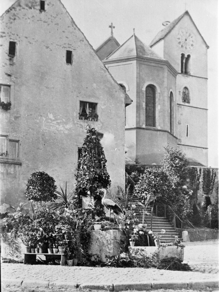 Die Prozession ging von der Schmiedengasse weiter die Lättegasse (heute Allschwilerstrasse) hinunter zum Postplatz, wo der 3. Altar stand.