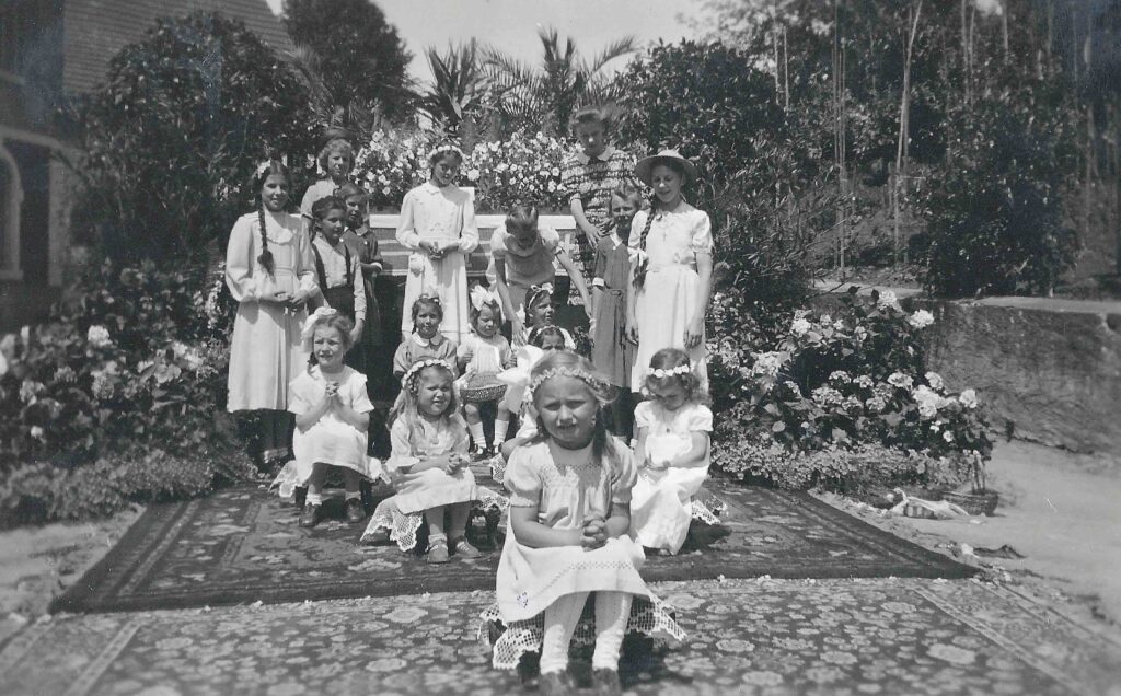 Blumenmädchen vor dem wunderschön geschmückten Altar in der Hohlegasse. Links im Bild ist das alte Konsum (Hohlegasse 3) zu erkennen.