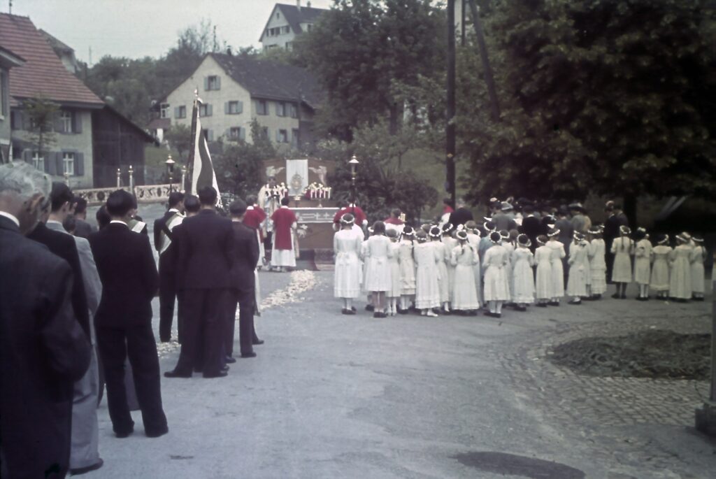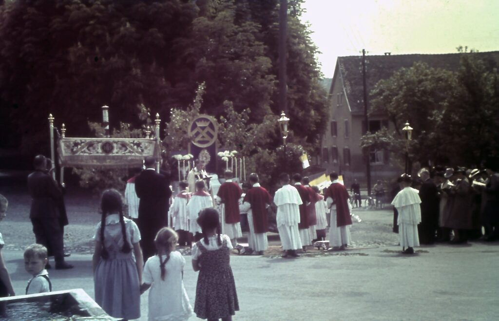 «Wenn dann der Prozessionszug, angeführt vom Musikverein, den Kindern, den weissen Mädchen, die die in ihren ungehängten Körbchen befindlichen Blumenblätter auf den Boden streuten und der Herr Pfarrer mit der Monstranz in den Händen und dem von den Kirchenräten getragenen Baldachin bei Luzias Altärchen eintraf, schlug unser Herz höher. Die Aufmachung unter unserer Linde war mustergültig und unschlagbar.»